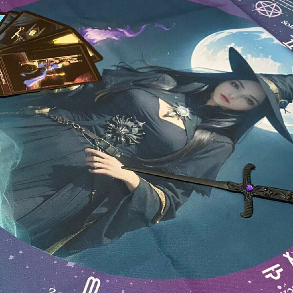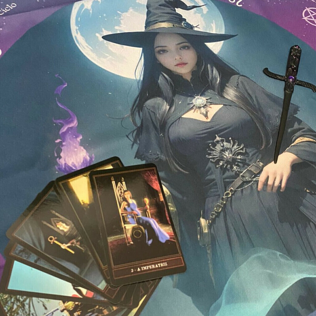 A Legitima Toalha Jogo Cartas Bruxa Tocha Wicca 70x70cm Roxa