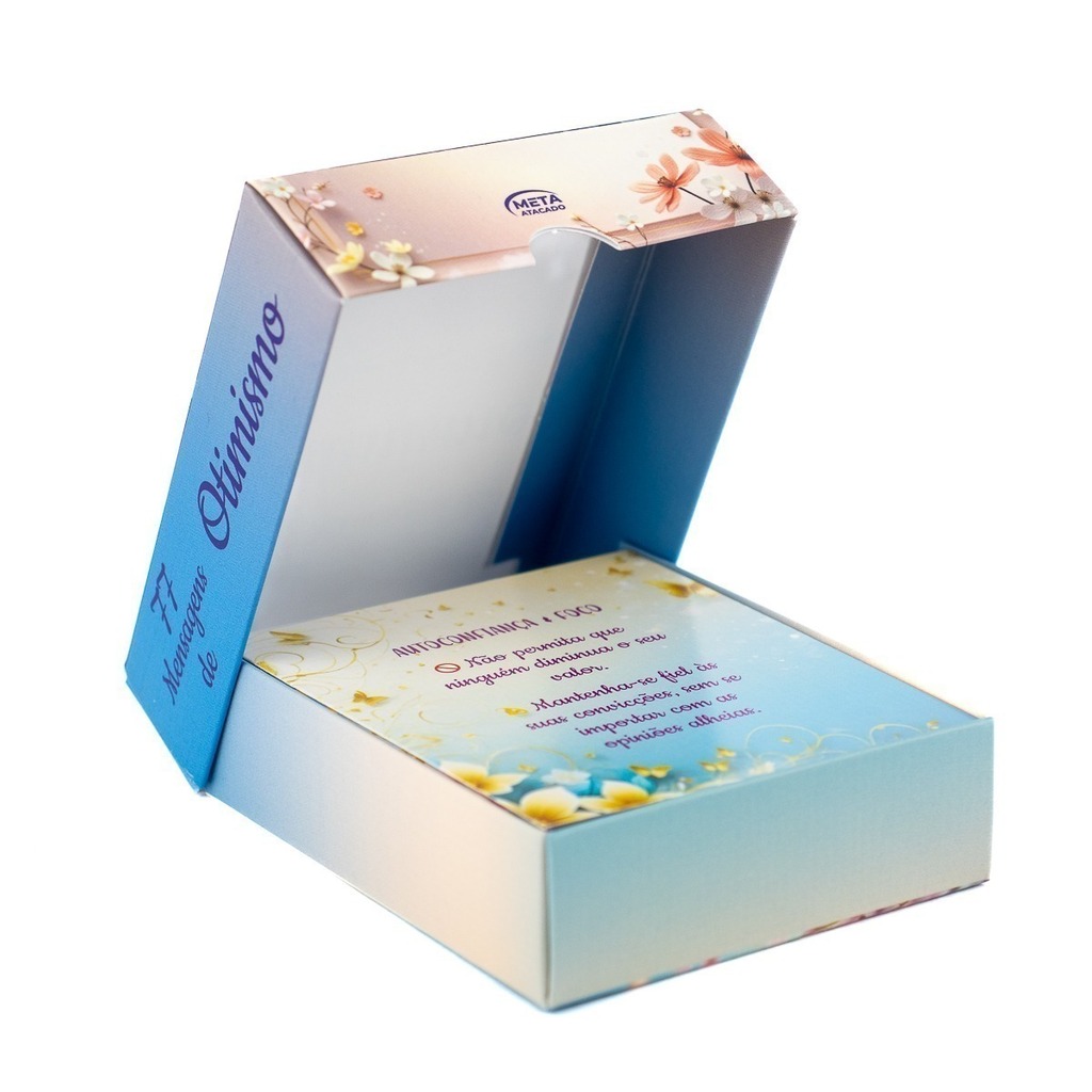 A Box 77 Mensagens de Otimismo é perfeita para quem busca autoconhecimento, motivação e bem-estar emocional. Cada mensagem foi escrita com carinho para tocar o coração, trazendo força e luz para sua rotina.