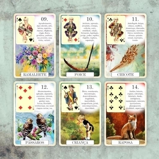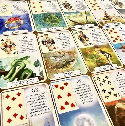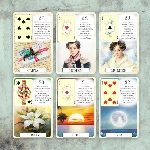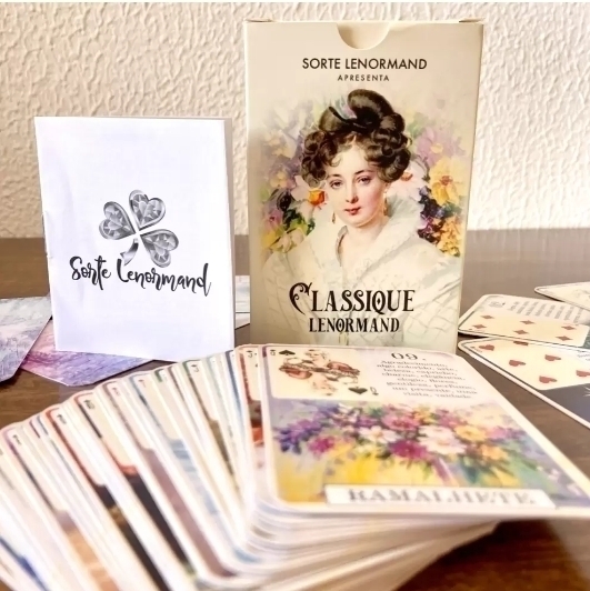 Conheça o Classique Lenormand, um baralho cigano com imagens vintage e com significados impressos em cada lâmina. Vem com uma carta extra: Obstáculos, para se adequar à Escola Brasileira de cartomancia Lenormand.