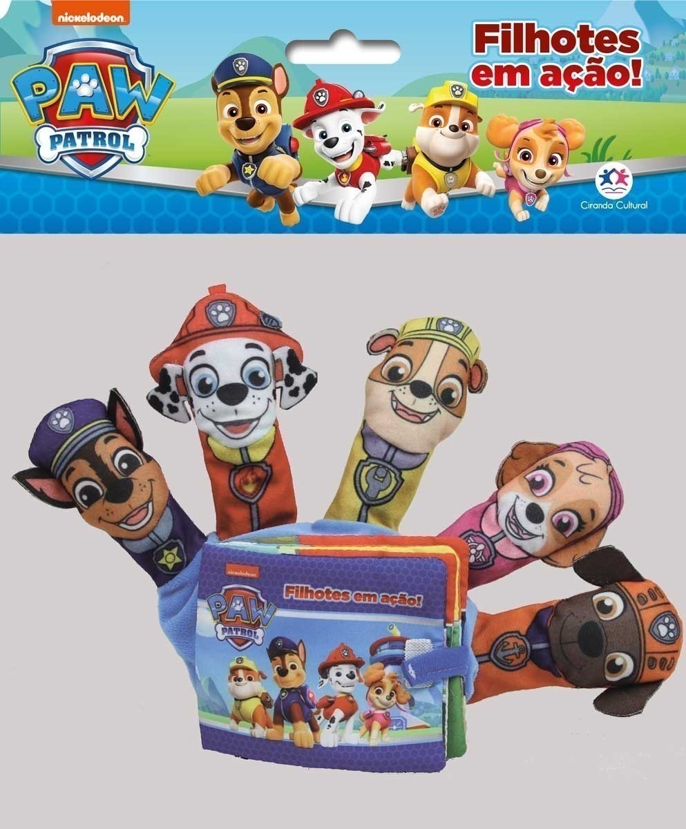 Diversão até na ponta dos dedos para ler e brincar com este livro dedoche da Patrulha Canina.