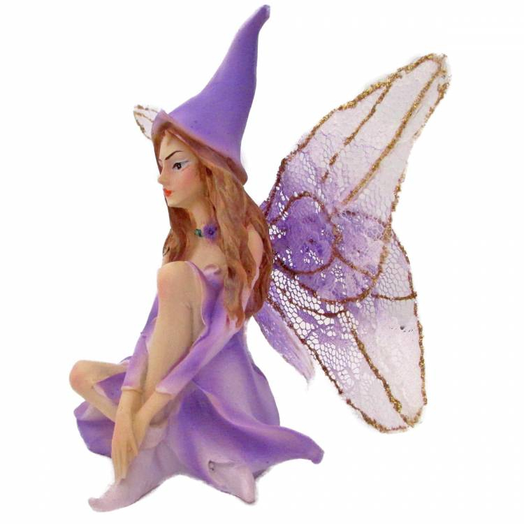 Estátua Fada Sentada com Chapéu 11cm - Lilás