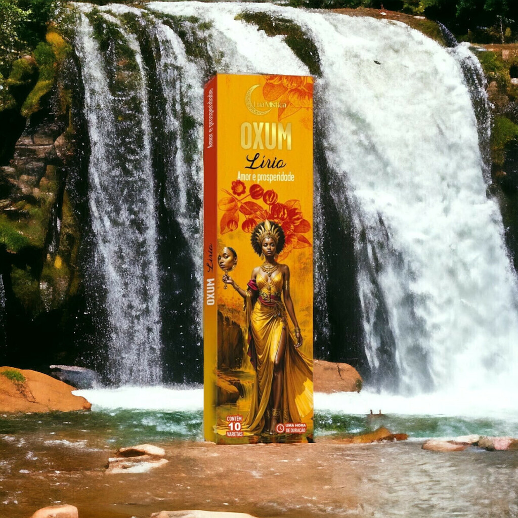 Com o delicado aroma de lírio, essa fragrância evoca a energia suave e acolhedora de Oxum, orixá do amor, da beleza e das águas doces. Cada caixa contém 10 varetas de incenso livre de carvão, proporcionando uma queima limpa e natural.