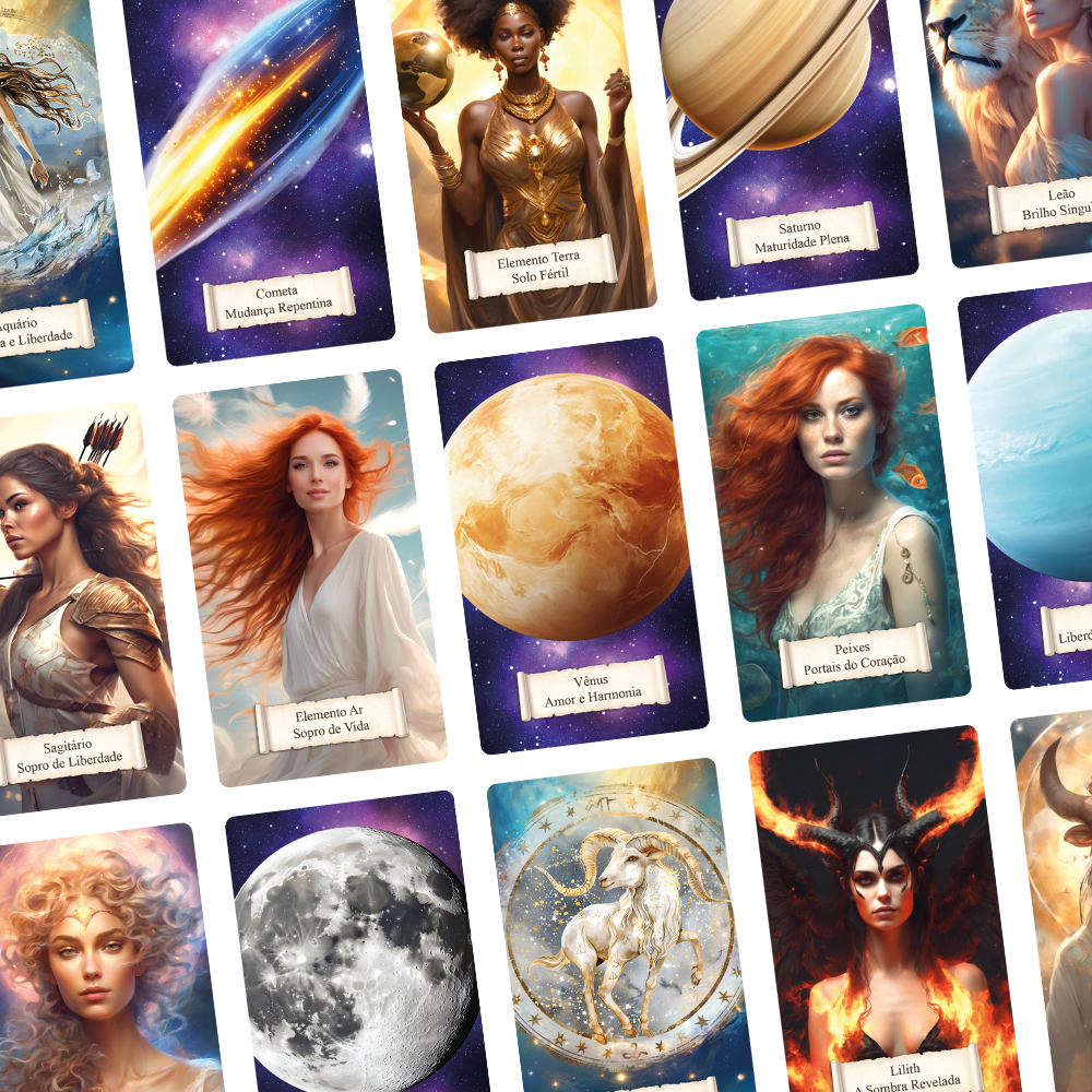 Oráculo Astral com 40 Cartas Ilustradas + Livro Guia com 100 Páginas – Autoconhecimento, Espiritualidade e Desenvolvimento Pessoal