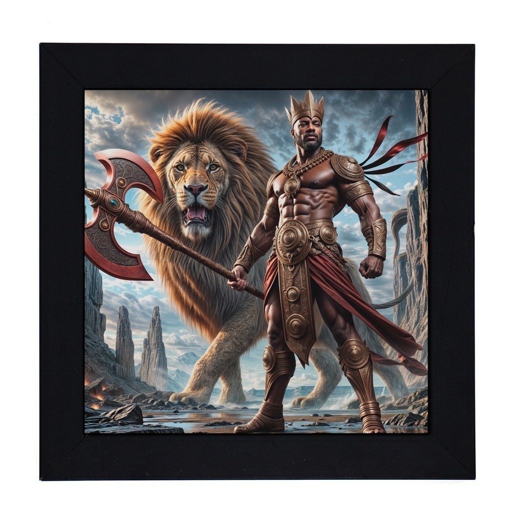 Quadro Orixá Xangô. Conecte-se com a energia divina de Xangô, o poderoso Orixá do fogo e da justiça, com este quadro encantador. Com moldura preta de 18 x 18 cm, ele traz sofisticação e espiritualidade para qualquer ambiente. Ideal para quem busca harmonia, proteção e beleza, esse quadro é perfeito para decorar sua casa, escritório ou até mesmo para presentear alguém especial.